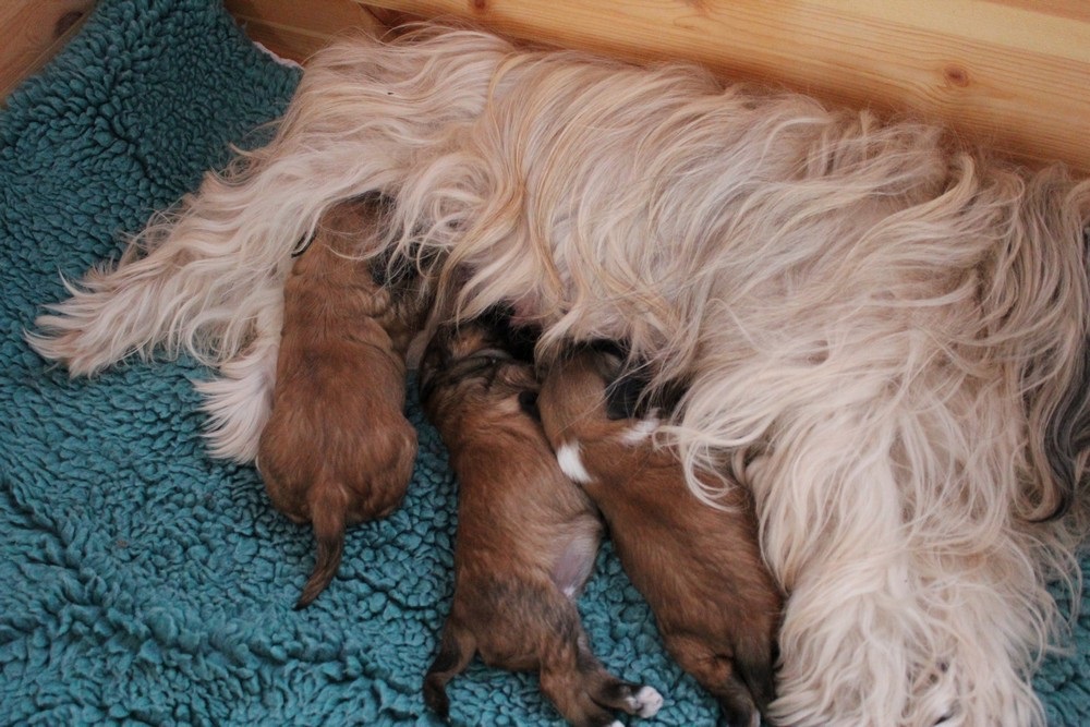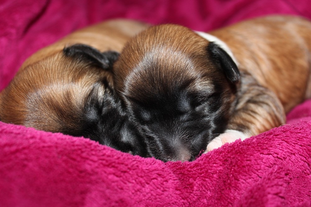 Die Mädchen sind 2 Wochen alt, die Augen gehen auf und eine von den Mädels hat schon die 1000 g - Marke erreicht.