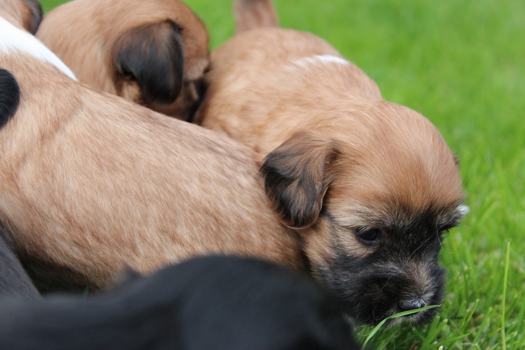In unserer Kinderstube ist diese Woche viel los gewesen. Die Welpen haben ihre erste Mahlzeit bekommen, und sind ins Wohnzimmer umgezogen. Auch schon den Garten durfen sie erkunden. Die Ausflüge aus der Wurfkiste werden immer länger und sie erkunden nach und nach das ganze Wohnzimmer.